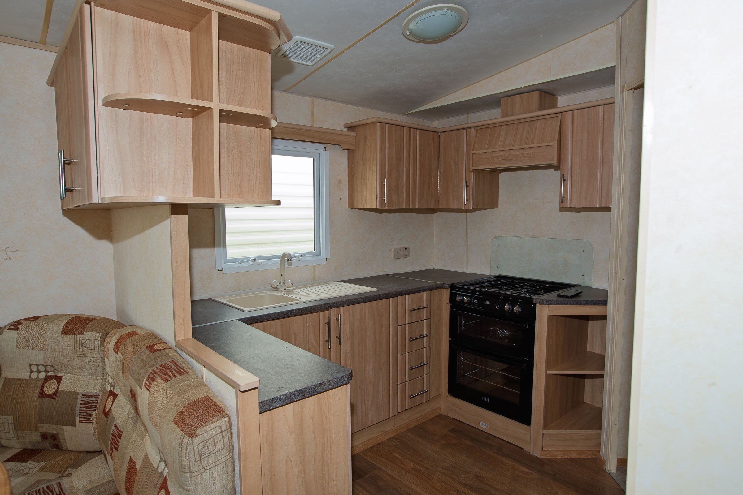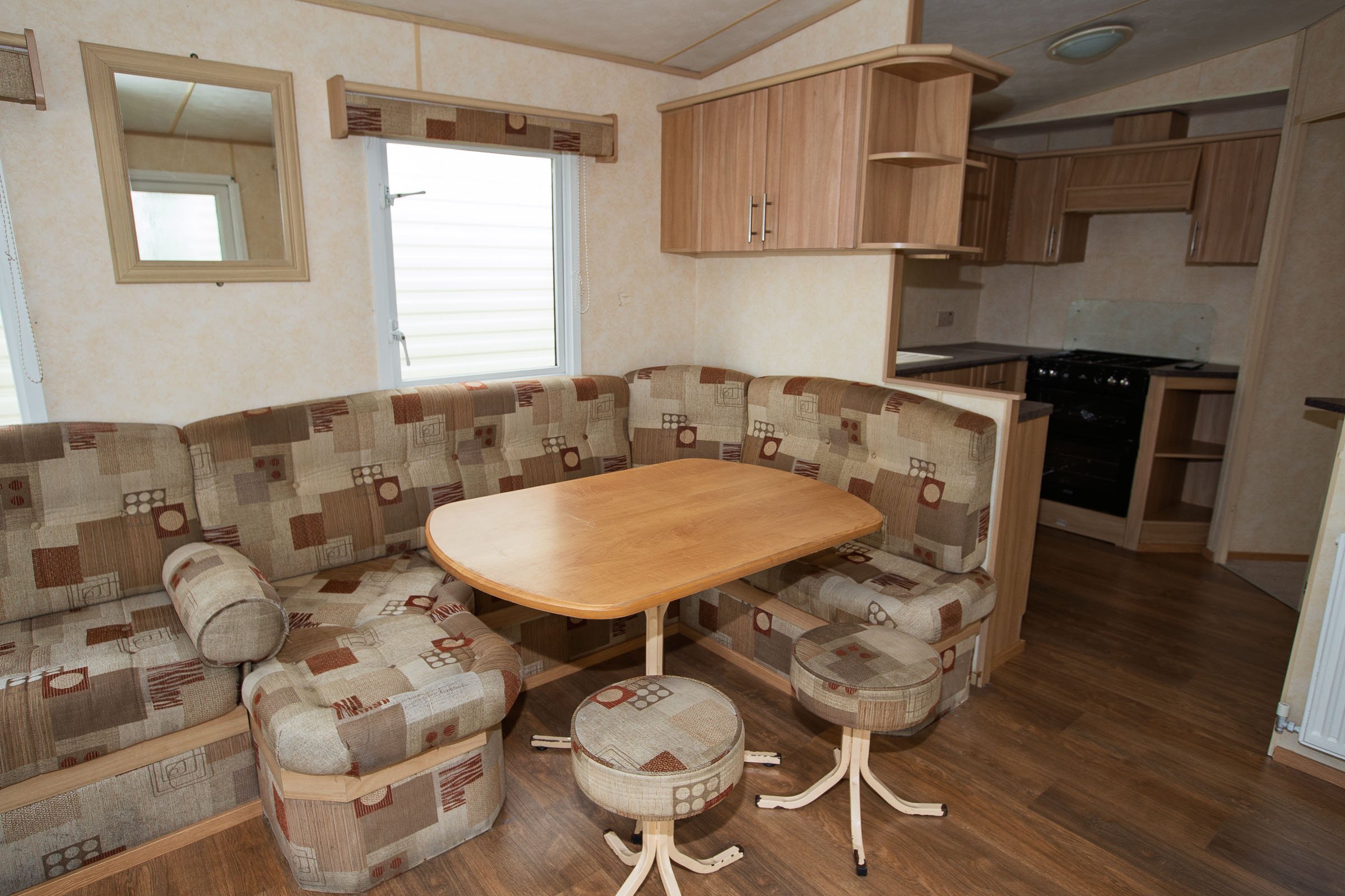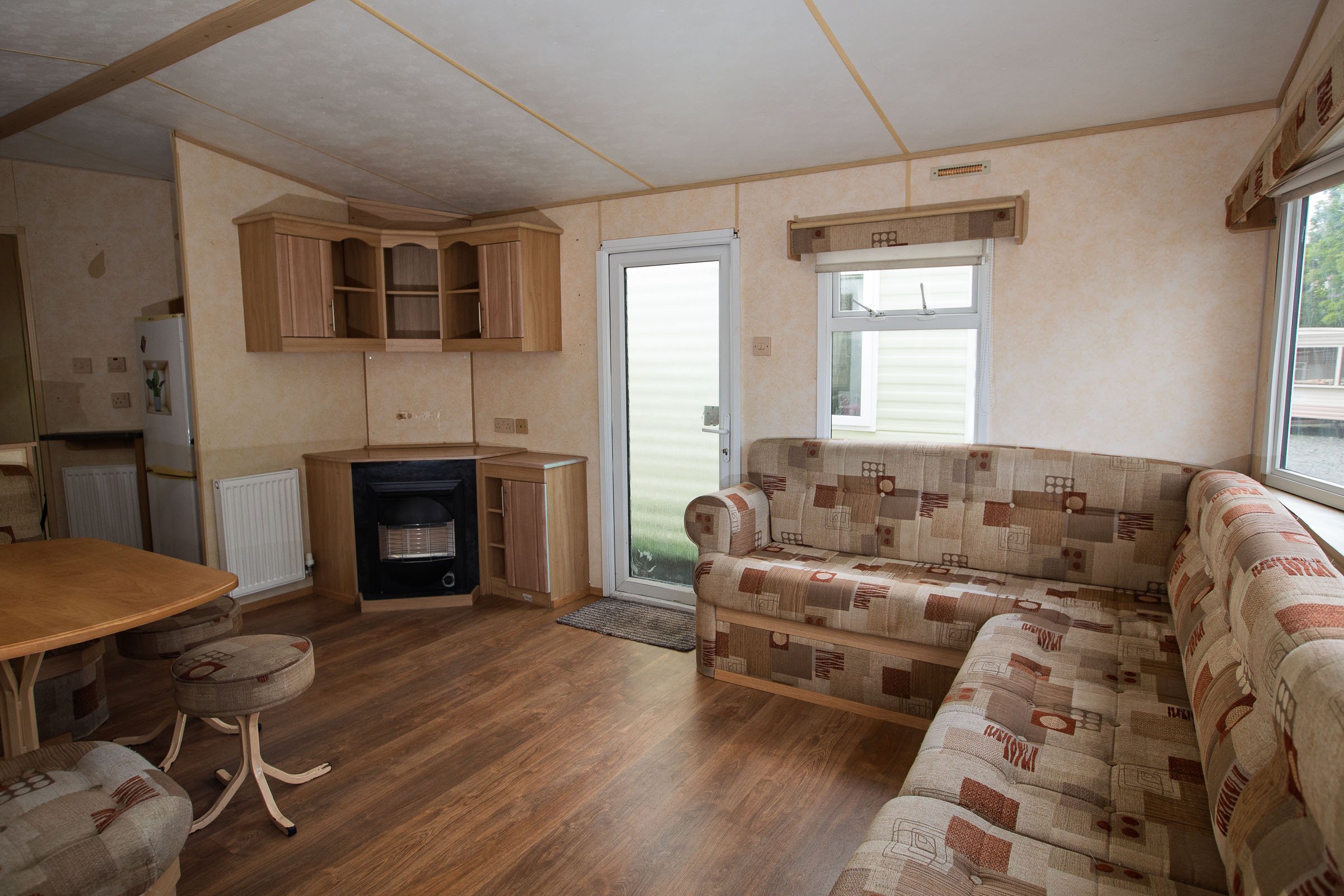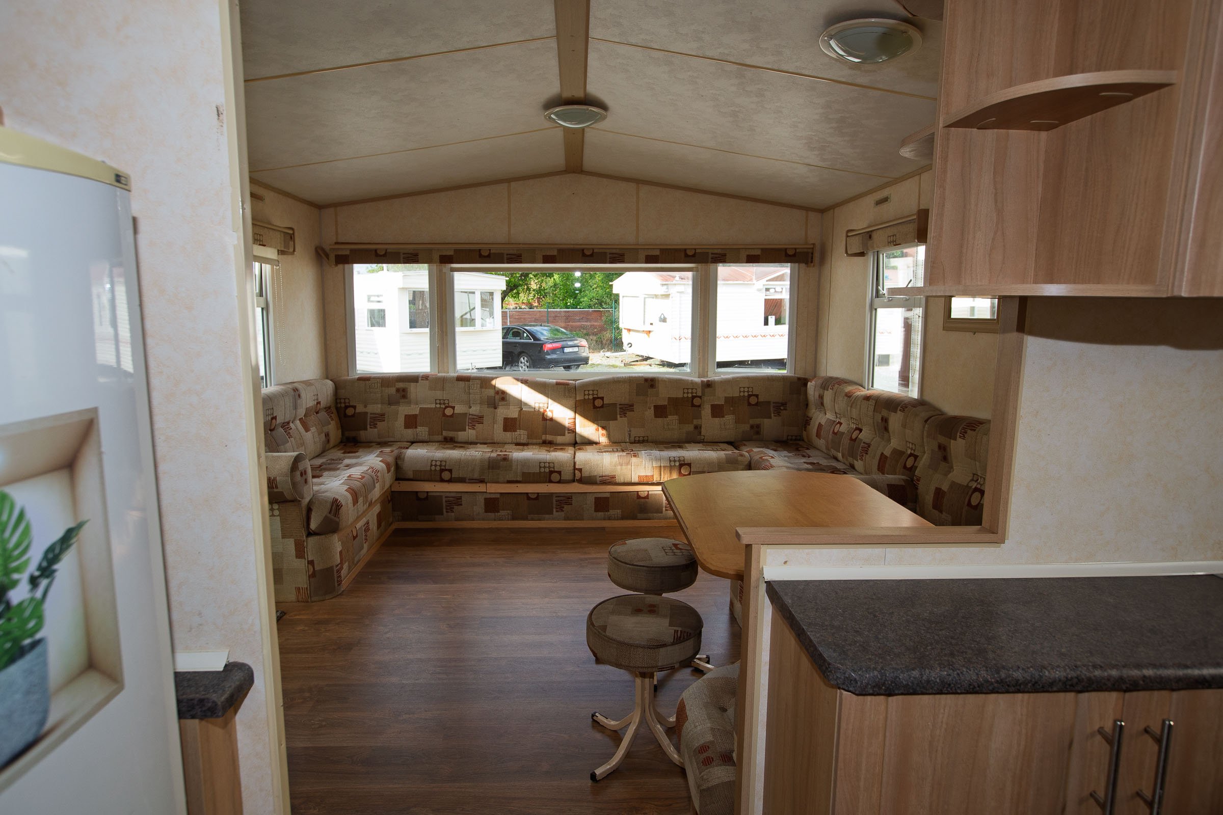 Široký prostorný mobilheim mobilní dům dispozice 4KK osazený izolovanými okny a dveřmi spolu s ústředním plynovým vytápěním. Obývací pokoj společně s jídelním koutem a kuchyňským koutem, plynový krb, plynový sporák s troubou a grilem, velká lednice spolu s mrazničkou, koupelna s WC a sprchovým boxem, dva pokoje po dvou samostatných lůžkách a vestavnou skříní, manželská ložnice včetně lůžka a vestavné skříně, cz zásuvky, plynový ohřev vody.