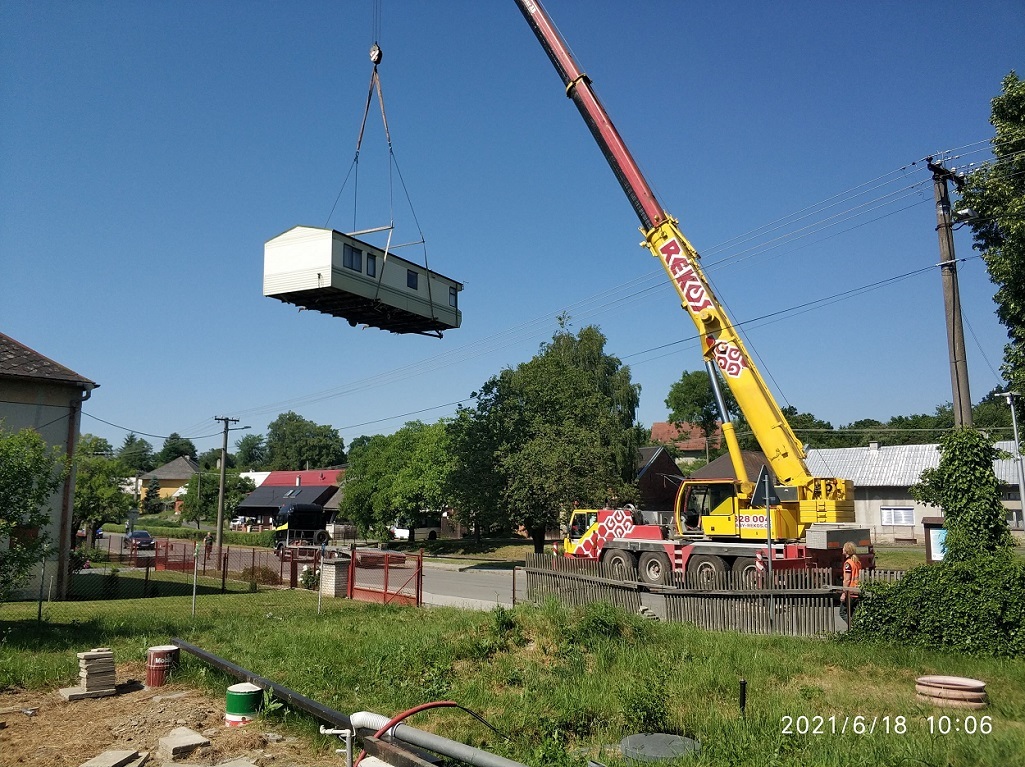 Na místě vykládky zajistíme bezpečné spuštění mobilheimu z tahače pomocí nájezdů a navijáku. V případě potřeby lze mobilheim dotáhnout na finální pozici pomocí traktoru nebo jiné manipulační techniky. V případě terénních překážek (vzrostlé stromy, keře, ploty, příkopy) je možné použít pro vykládku a umístění autojeřáb.